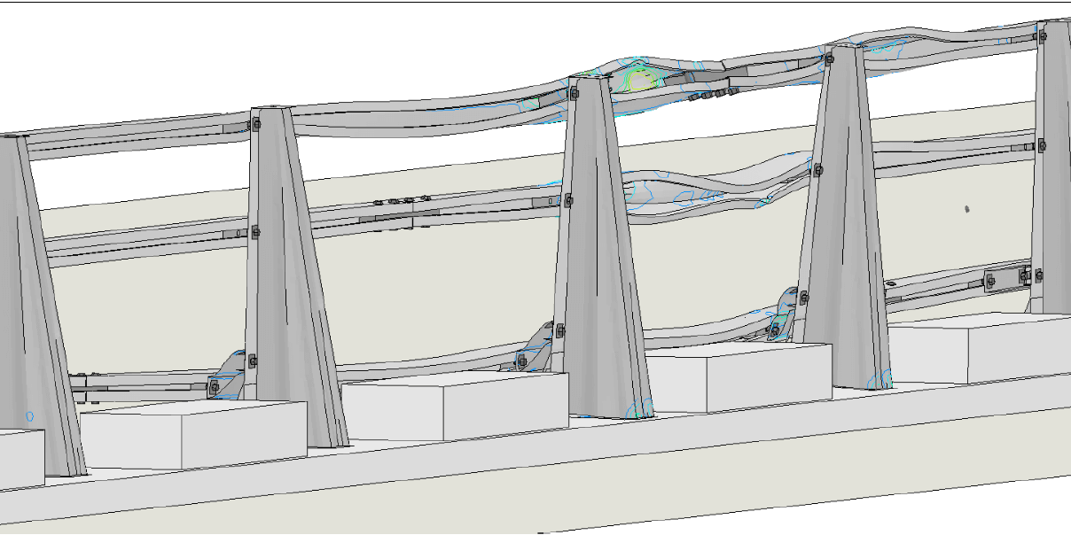 Ese tipo de situaciones son habituales en proyectos reales y, al mismo tiempo, difíciles de ensayar de forma estándar. Ahí es donde la simulación permite comprobar si parámetros como la capacidad de redirección del vehículo, el ancho de trabajo o la deformación del sistema se mantienen en márgenes seguros antes de tomar decisiones en obra.