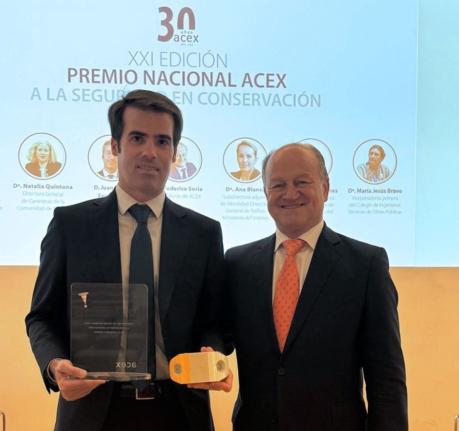 optimizar el mantenimiento y reducir los riesgos en carretera. El acto de entrega tuvo lugar el miércoles 25 de junio en el Colegio de Ingenieros de Caminos, Canales y Puertos de Madrid, con la participación de destacadas autoridades como Federico Soria, presidente de ACEX, Ana Blanco, Subdirectora adjunta de Movilidad de la Dirección General de Tráfico, y Juan Pedro Fernández, Director General de Carreteras, quienes subrayaron la importancia de fomentar la innovación en el mantenimiento y mejora de las infraestructuras viarias.